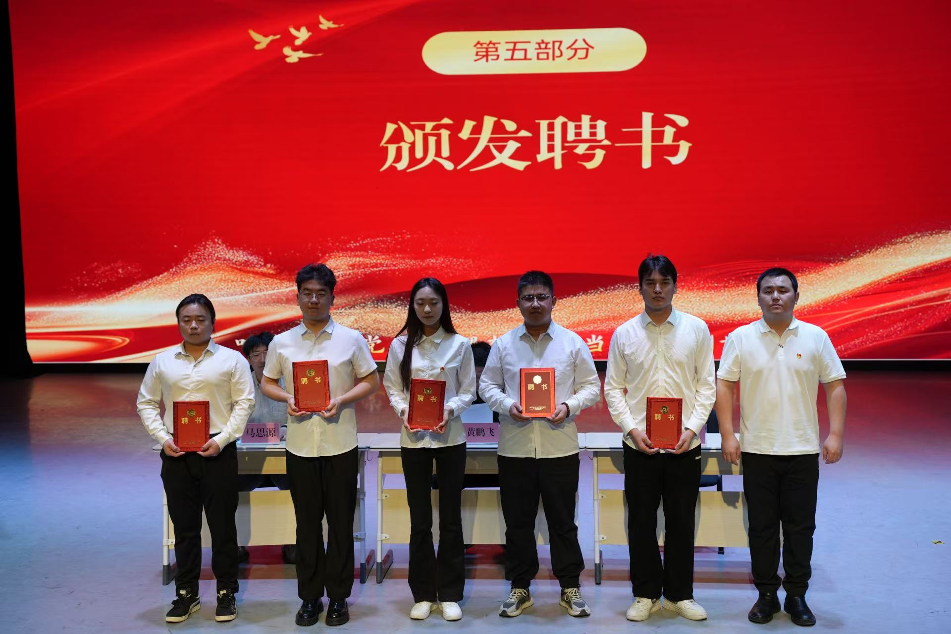 在换届环节,马思源老师宣读换届名单,宣布了大学生自律管理委员会新一届成员的任命,并为新一届成员颁发聘书,传递信任与责任。