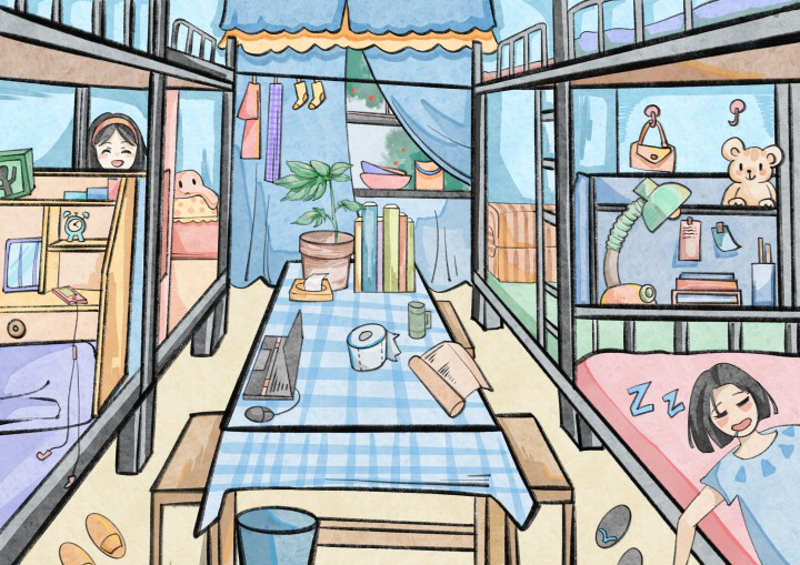 5.试着换宿舍。你发现你和舍友都做出努力,但实在没法解决的时候,换一个作息相同的宿舍,可能是最佳的选择。
