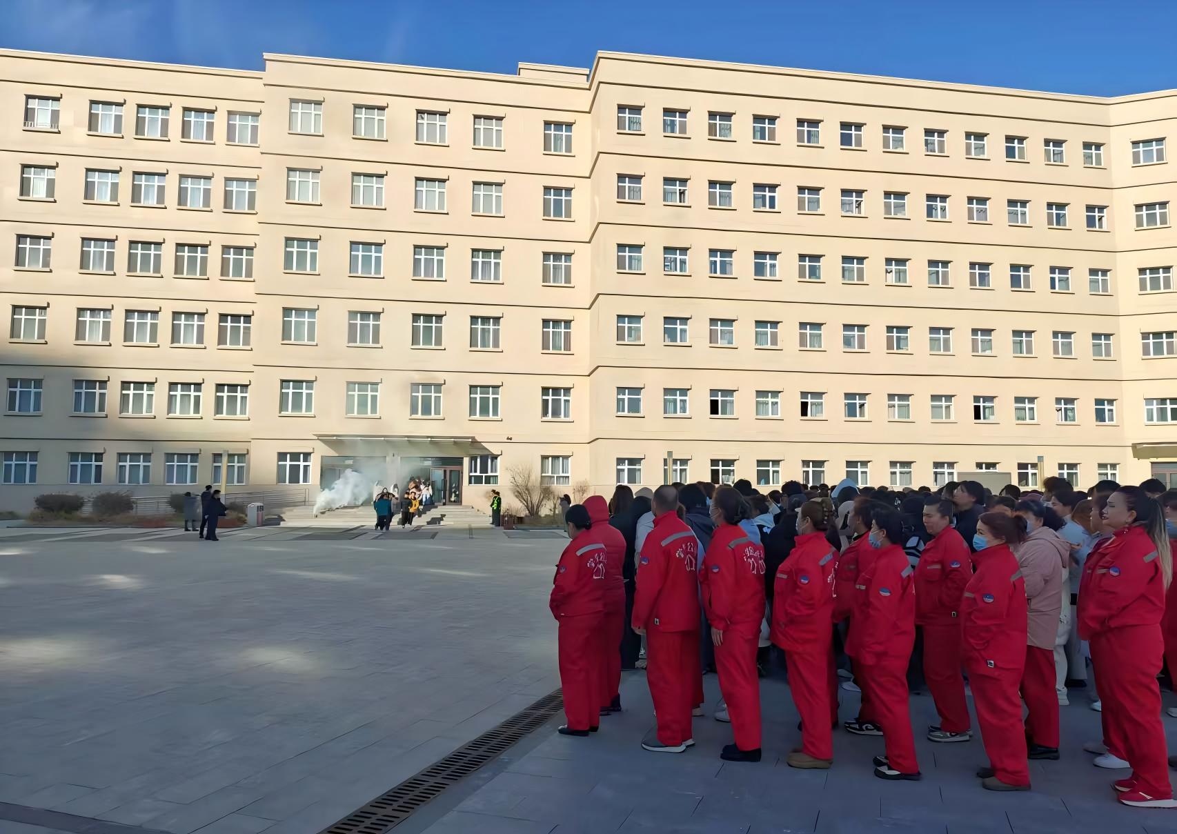 此次以组织消防疏散演练为主,在驻地消防队员的引导下,社区教职工观看参演人员沿预定路线有序撤离。疏散过程紧张有序,抵达安全区域后迅速集合清点人数,有效提升了社区教职工对应急疏散的认识及自救技能。