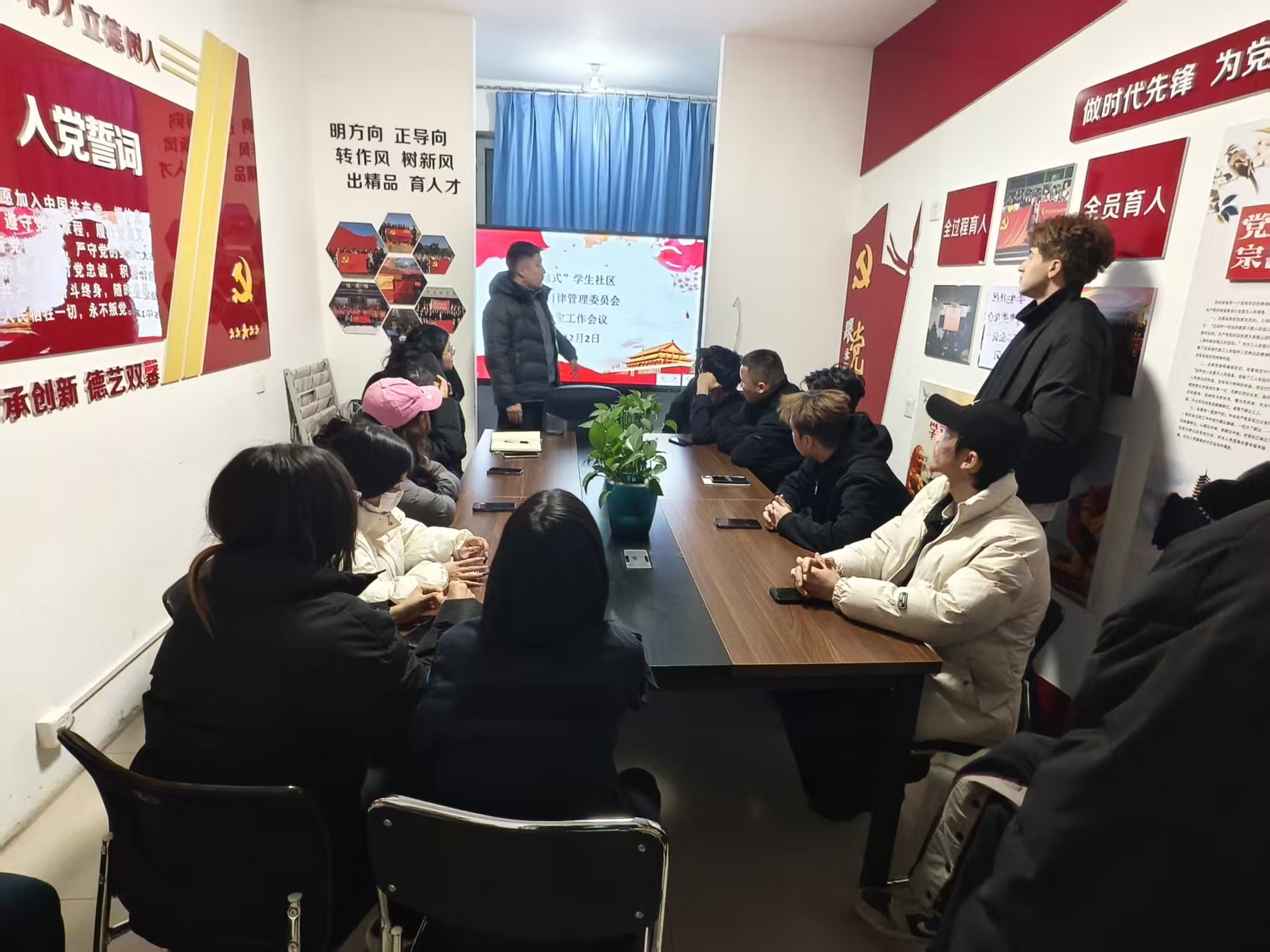为深入推进校园安全稳定工作,切实增强我校大学生自律管理委员会(简称“自管会”)校园安全意识和扑灾救火能力,坚决遏制各类安全事故的发生,营造良好的宿舍安全环境。12月2日,自管会学生干部在两校区“一站式”学生社区活动室开展安全稳定工作会议。