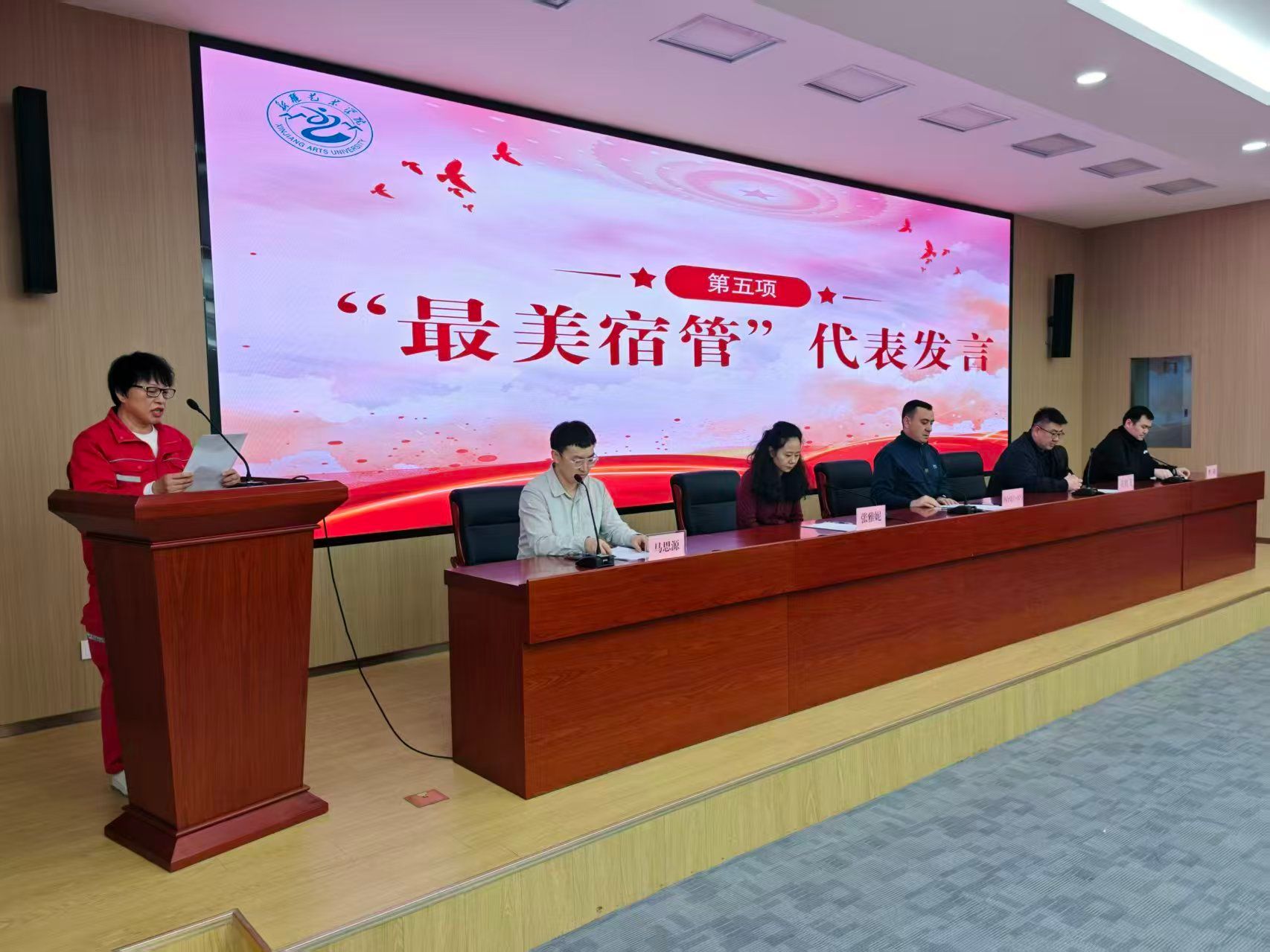 两校区最美宿管代表支建波、苏伊丽依次发言,结合一线工作经历分享服务学生、守护社区的实践感悟,讲述了扎根岗位、暖心育人的鲜活故事,引发在场人员共鸣。