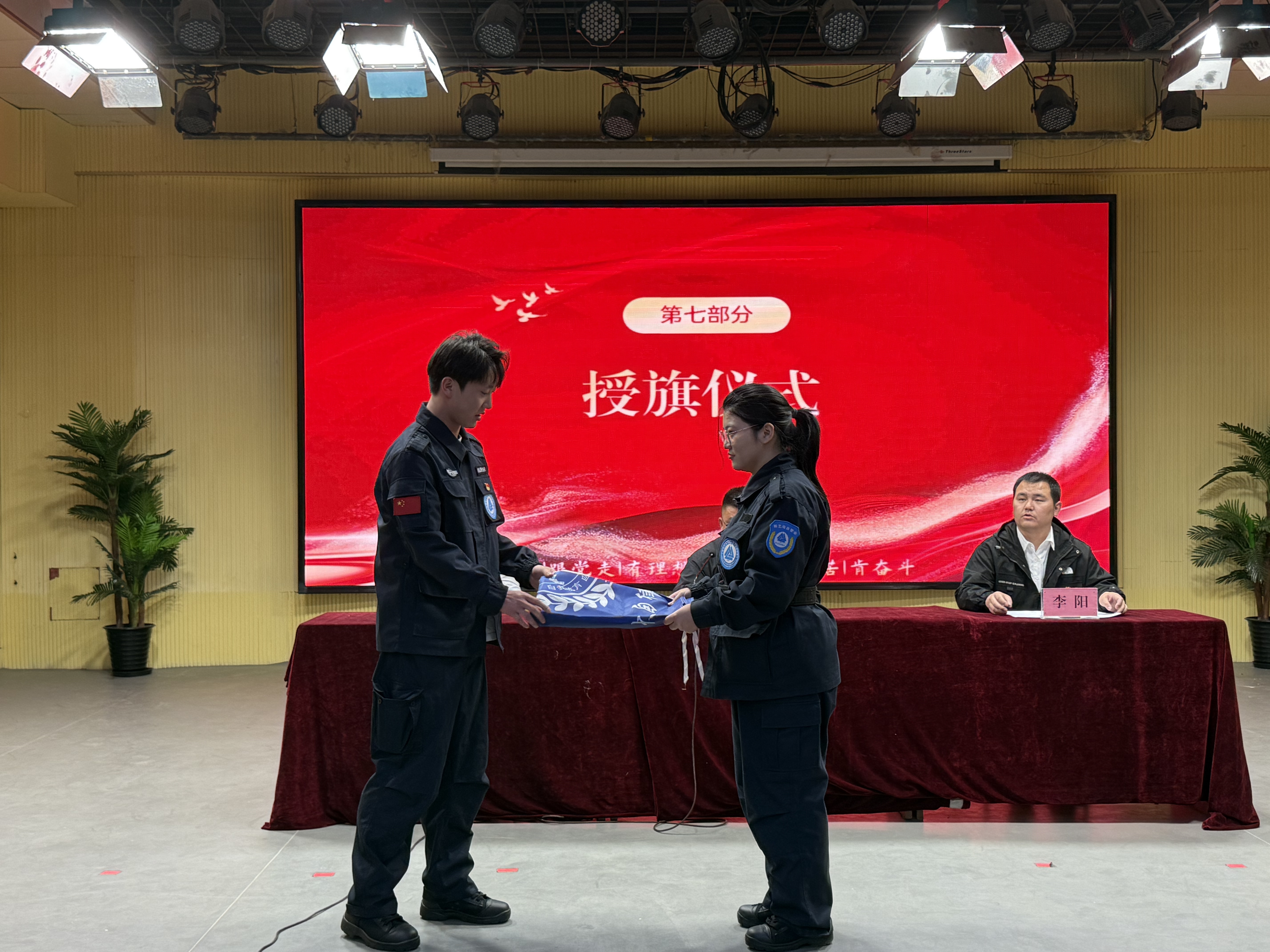 授旗仪式上,旗帜的交接象征着使命的传承,也将会议氛围推向高潮。